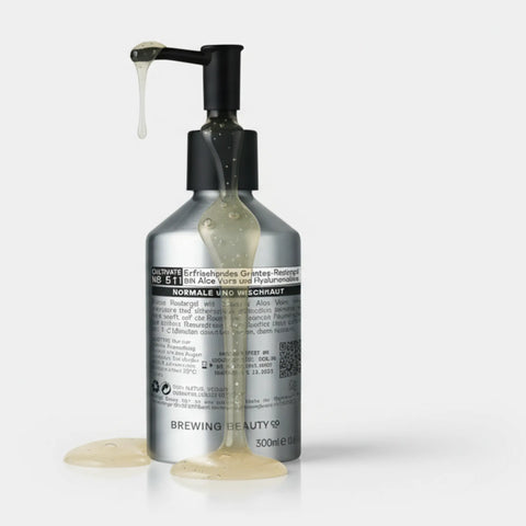 A clear, weightless gel spreads effortlessly, catching the light as it cushions each stroke. Coolness blooms on contact — a whisper of green tea and aloe that calms the skin. As the blade glides, tension fades, leaving behind a refreshed, hydrated smoothness that feels renewed and impeccably clean.